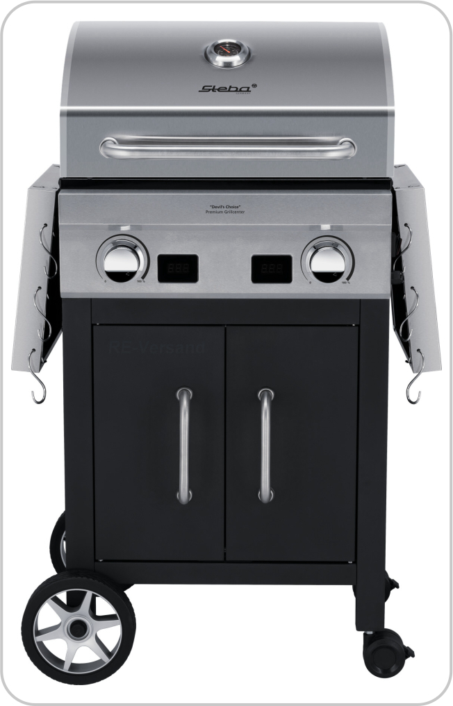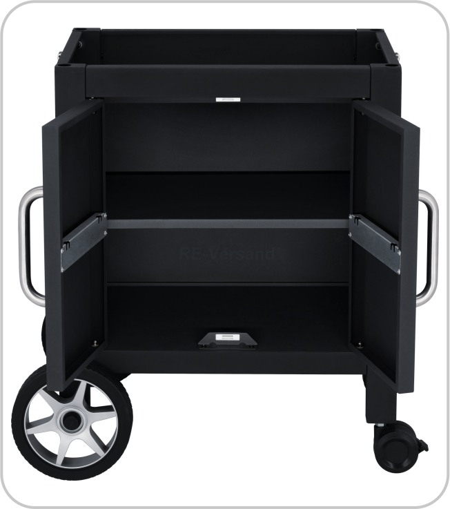 Alles an seinem Platz, das durchdachte Design des Grillmobils. Das Deluxe Grillcenter wird durch das praktische Grillmobil ergänzt, das mit zwei Ablagen, einer großen Abstellfläche und Haken zum Aufhängen von BBQ-Zubehör ausgestattet ist. Durch seine Räder ist es mobil einsetzbar und bietet maximale Flexibilität beim Grillen im Freien. Optional erhältlich sind ein Drehspieß für Hähnchen und eine Grillabdeckung, um das Grillcenter zu vervollständigen und optimal zu schützen.
