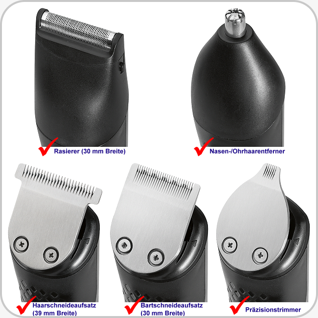 5 in 1 – Profi Haarschneider, Rasierer, Präzisionstrimmer, Bartschneider und Nasen-/Ohrhaarentferner in Einem