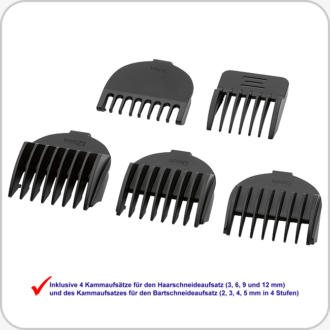4 Kammaufsätze (3, 6, 9 und 12 mm)