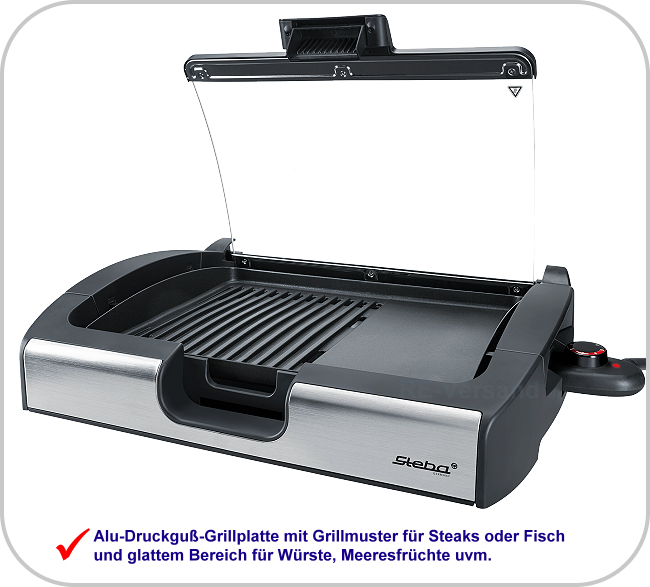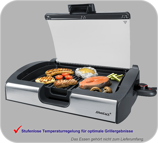 Der Steba BBQ-Tischgrill VG 200 ist ein echtes Highlight für Ihre Grillparty. Spontan einsatzbereit ohne lange Vorbereitungszeit gelingen leckere Steaks, Bratwürste, Fisch und Gemüse auf der massiven Druckguß-Grillplatte immer optimal. Ihrer Fantasie sind keine Grenzen gesetzt, benutzen Sie den Fettauffang als Aromaschale und geben Sie Ihrem Grillgut bei geschlossenem Deckel eine besondere Note. Mit der stufenlosen Temperaturregelung behalten Sie immer die volle Kontrolle über Ihren Grill und können diese immer konstant halten oder variabel an das Grillgut anpassen – ein klarer Vorteil gegenüber herkömmlichen Kohle-Grills.