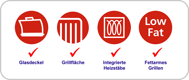 Durch die eingegossenen Heizelemente werden sehr schnell hohe Grilltemperaturen erreicht und gleichmäßig auf der Grillfläche verteilt. Dadurch verhindern Sie auch den gefährlichen Fettbrand - das ermöglicht Ihnen bedenkenlosen Grillgenuss. Die große Grillfläche mit einer Abmessung von 40 x 29 cm bietet nicht nur Grillspaß in allen Facetten, sondern bereitet durch seine Antihaftbeschichtung auch Spaß bei der Reinigung, nicht zuletzt auch durch die abnehmbare Grillplatte. Überflüssige Bratenflüssigkeit läuft in eine Auffangschale ab und ermöglicht ein fettreduziertes und nahezu geruchs- und qualmfreies Grillen.