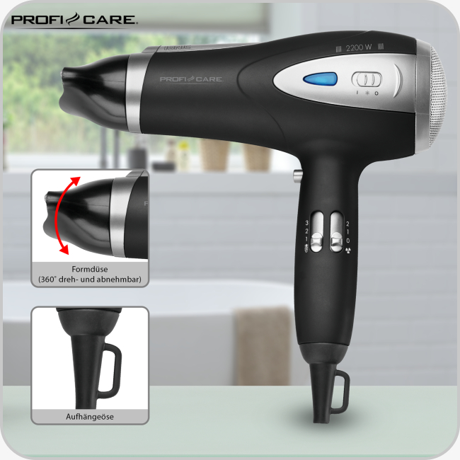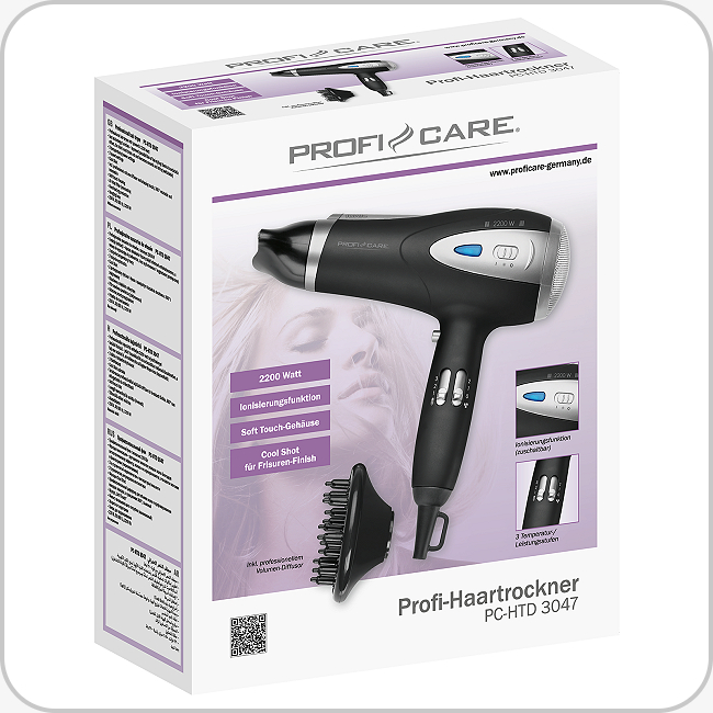 Sehr schöne und hochqualitative ProfiCare PC-HTD 3047 Profi-Haartrockner in Schwarz mit praktischen Funktionen und Zubehör für ein perfektes Styling zu verkaufen.