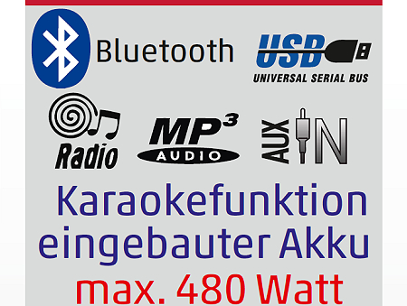 Max. 480 Watt Musikleistung: 2x Breitbandlautsprecher + 2x Hochtöner